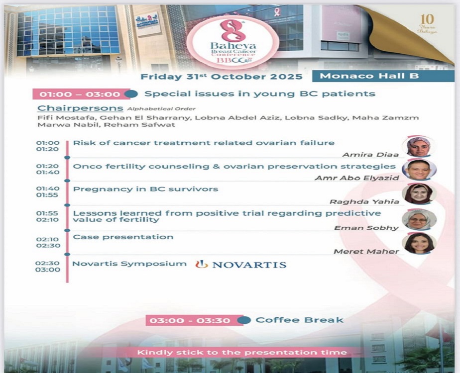 W4O-Egypt: Participation of W4O-Egypt members in the 8th version of BAHIA organization conference October 31, 2025 Title of the session: Young Breast Cancer Fertility Preservation